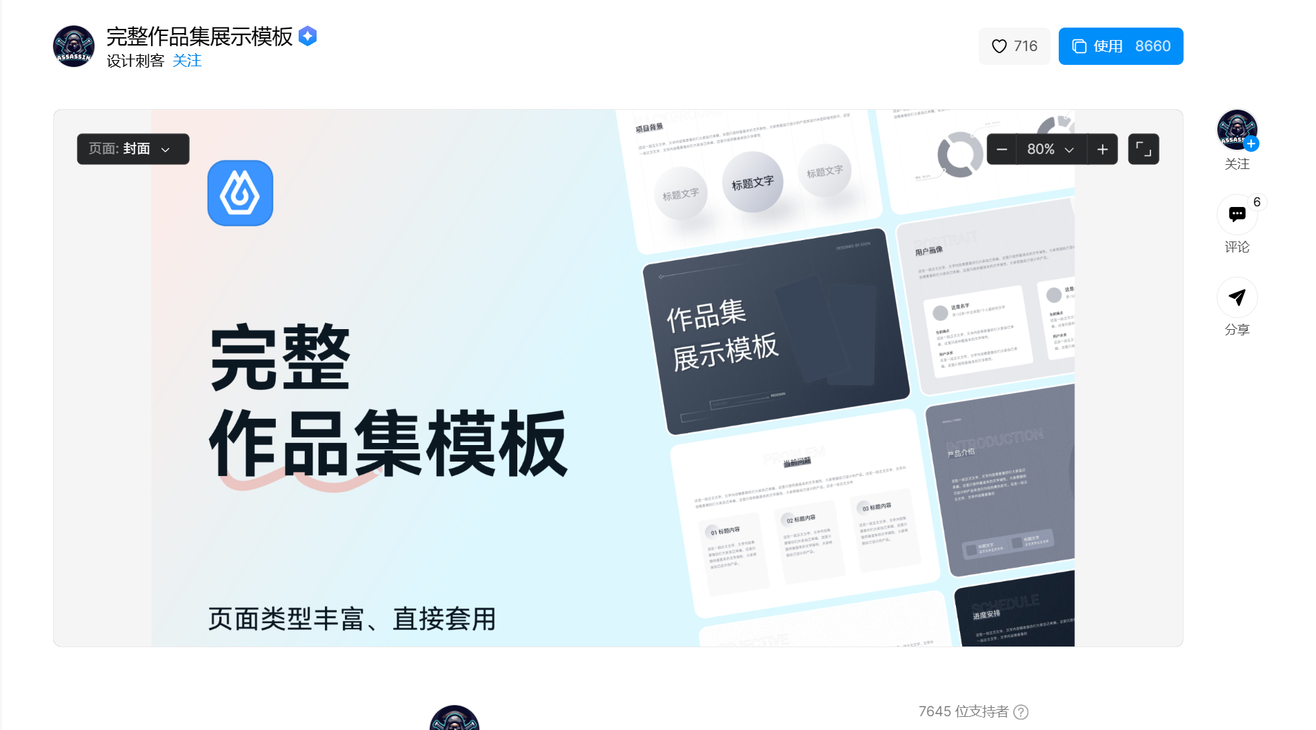 👇点击下图,套用免费模板,帮你快速完成高质感作品集页面