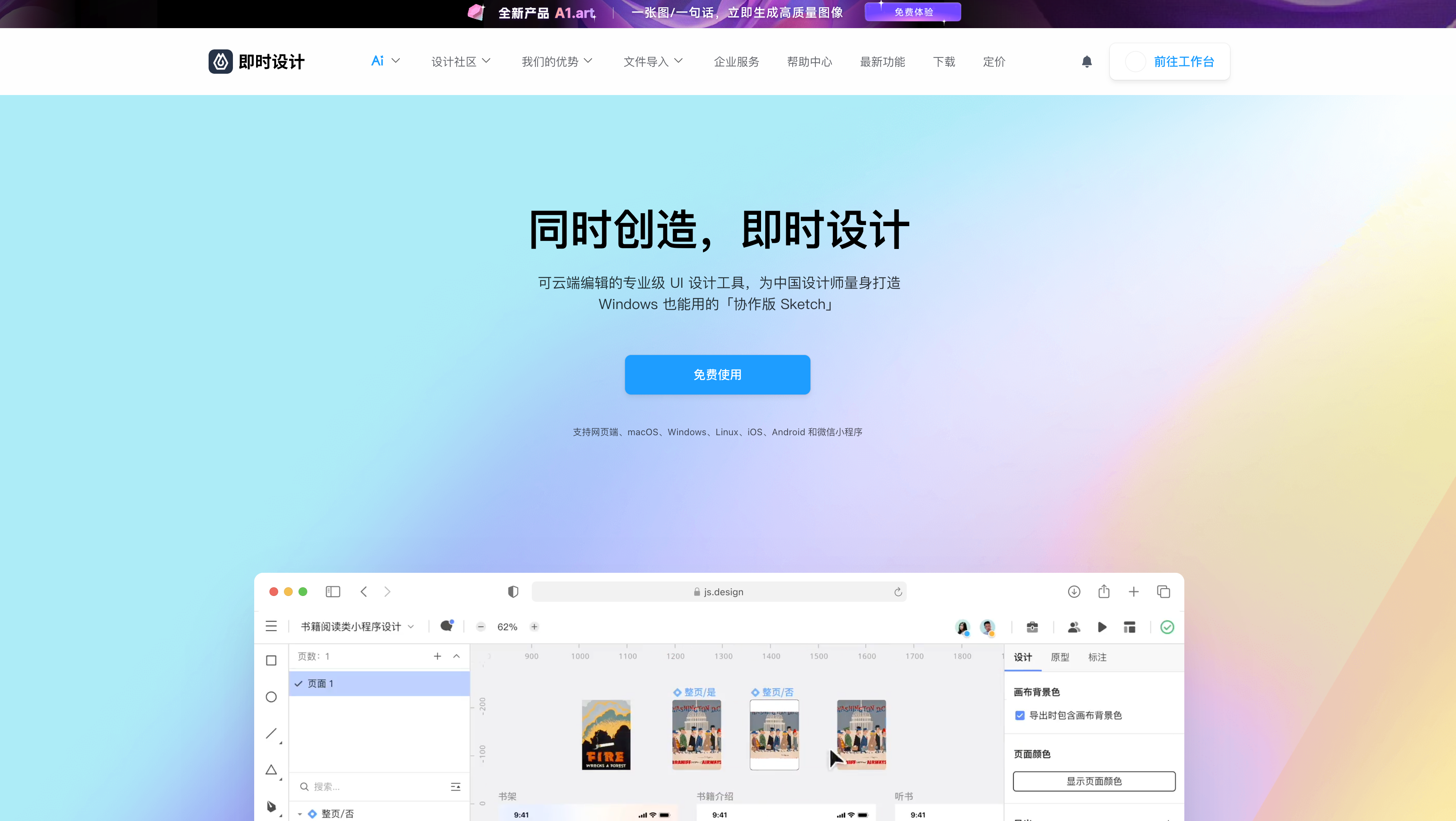 而相较于 AI,即时设计更大的优势是这是一款基于 Web 的在线设计工具,无需下载也能随着软件的更新在下一次打开时完成自动加载,所有插件也无需下载到本地便能直接在工具中运行,能够节省更多的设备内存。此外,即时设计也能支持图像编辑修改、原型设计、动效添加等设计师常用功能,并支持多种主流格式的无缝批量导入,不仅适合初学者入门,也适合专业设计师完成设计作品。