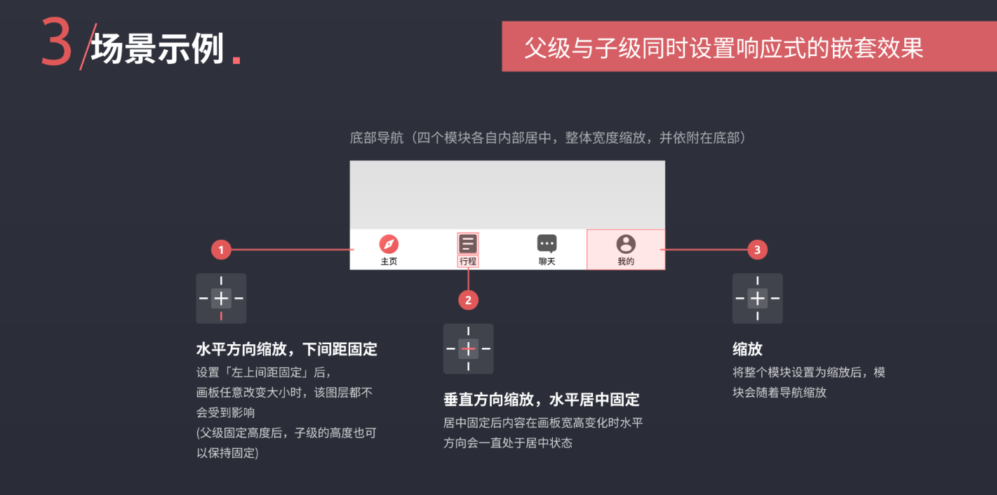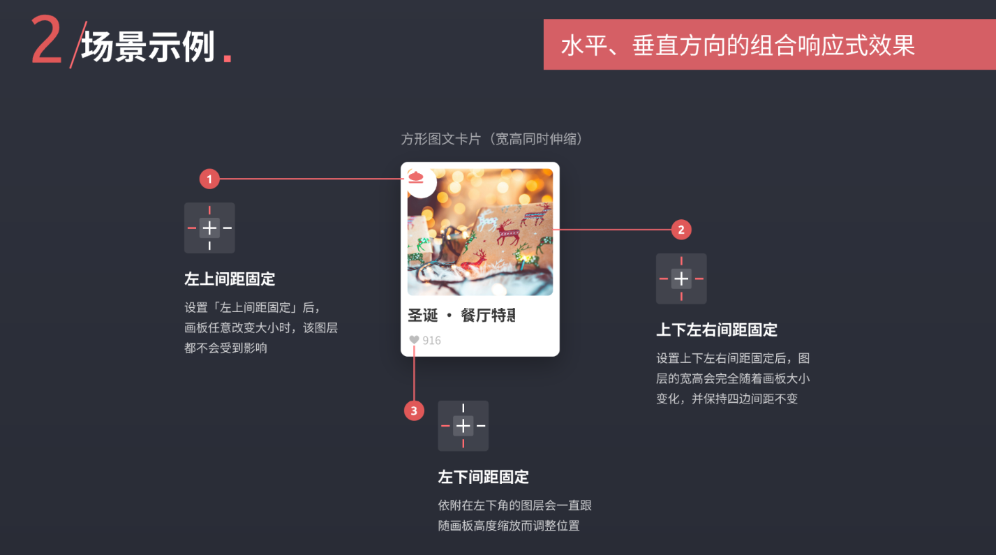 左右间距固定:保持左右间距不变,图层宽度自动变化。