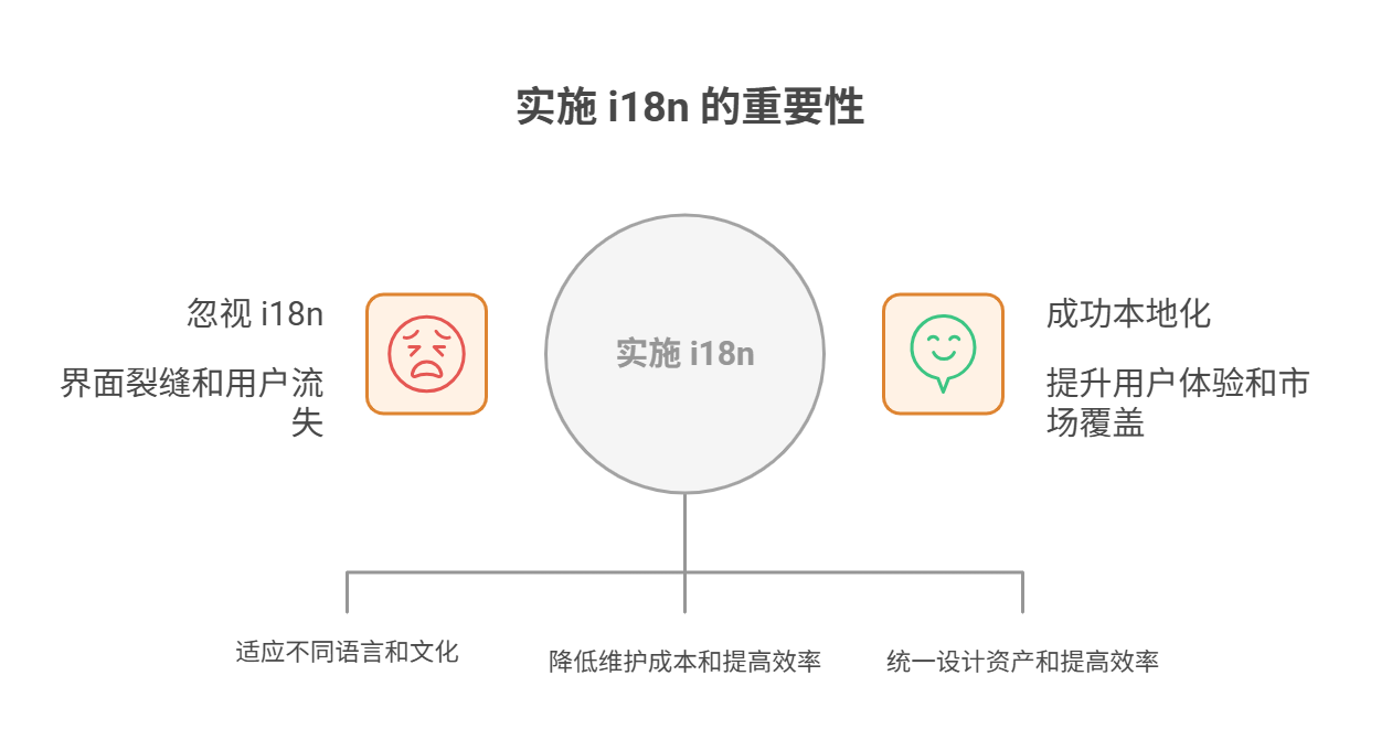 如果在设计和开发早期就进行了 i18n 规划,那么在后续新增语言或扩展市场时,本地化流程就更为顺畅,变更成本更低,加快产品上市速度。相反,忽视 i18n 可能导致界面裂缝、布局混乱、用户流失等问题。
