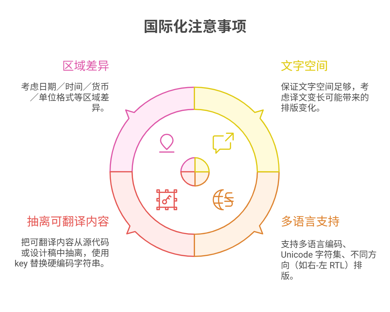 换句话说:国际化为本地化铺路,做好 i18n 就能让 l10n 更加高效、成本更低。