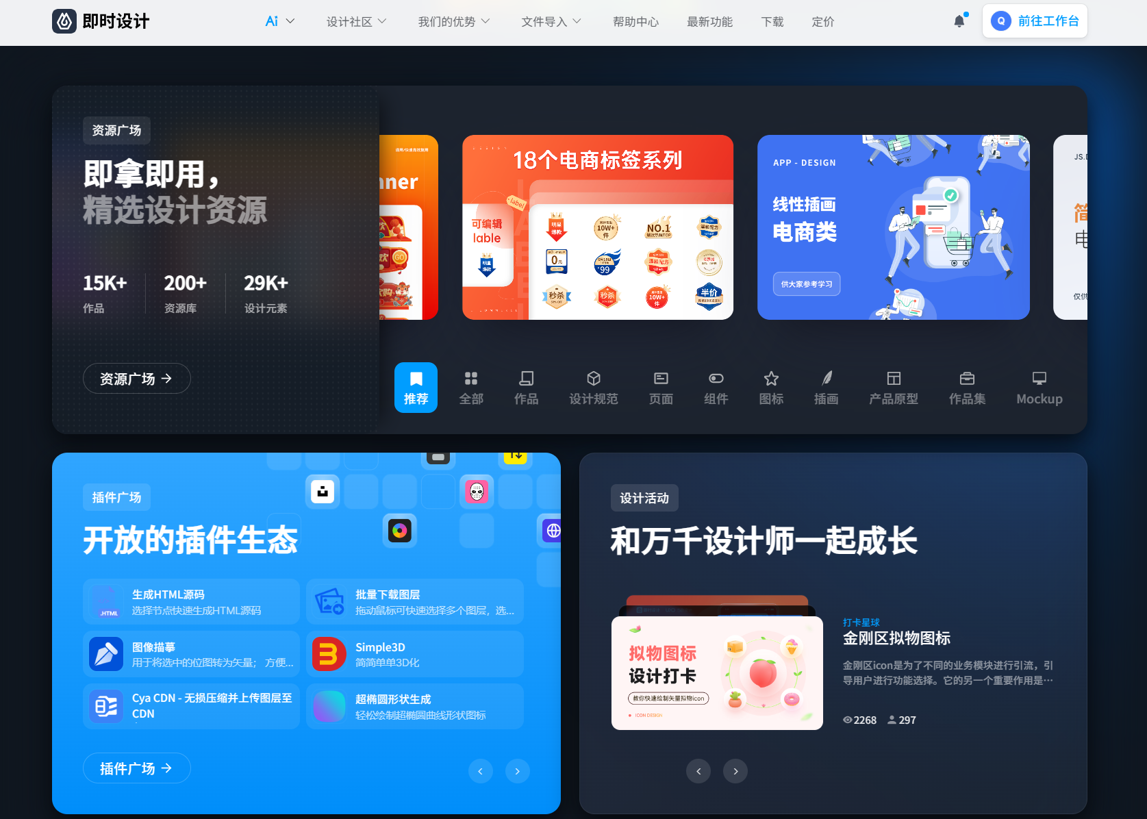 即时设计的资源广场免费提供上万种优质设计资源与 150+功能插件,UI 设计海量资源一件套用,不用从零开始做设计,包括页面、组件、设计规范、APP 设计案例等超多素材,所有的组件素材都可以直接编辑使用,只需要按照模板修改自己想要的内容即可,能够保证设计小白也能够快速上手。