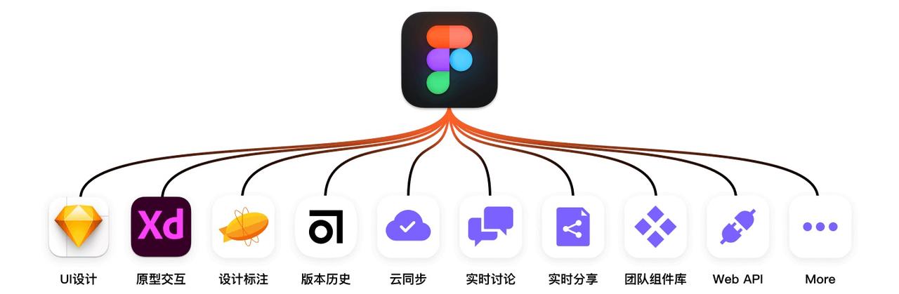 一张图总结 Figma 的功能和强大之处就是这样的一个“八爪鱼”。