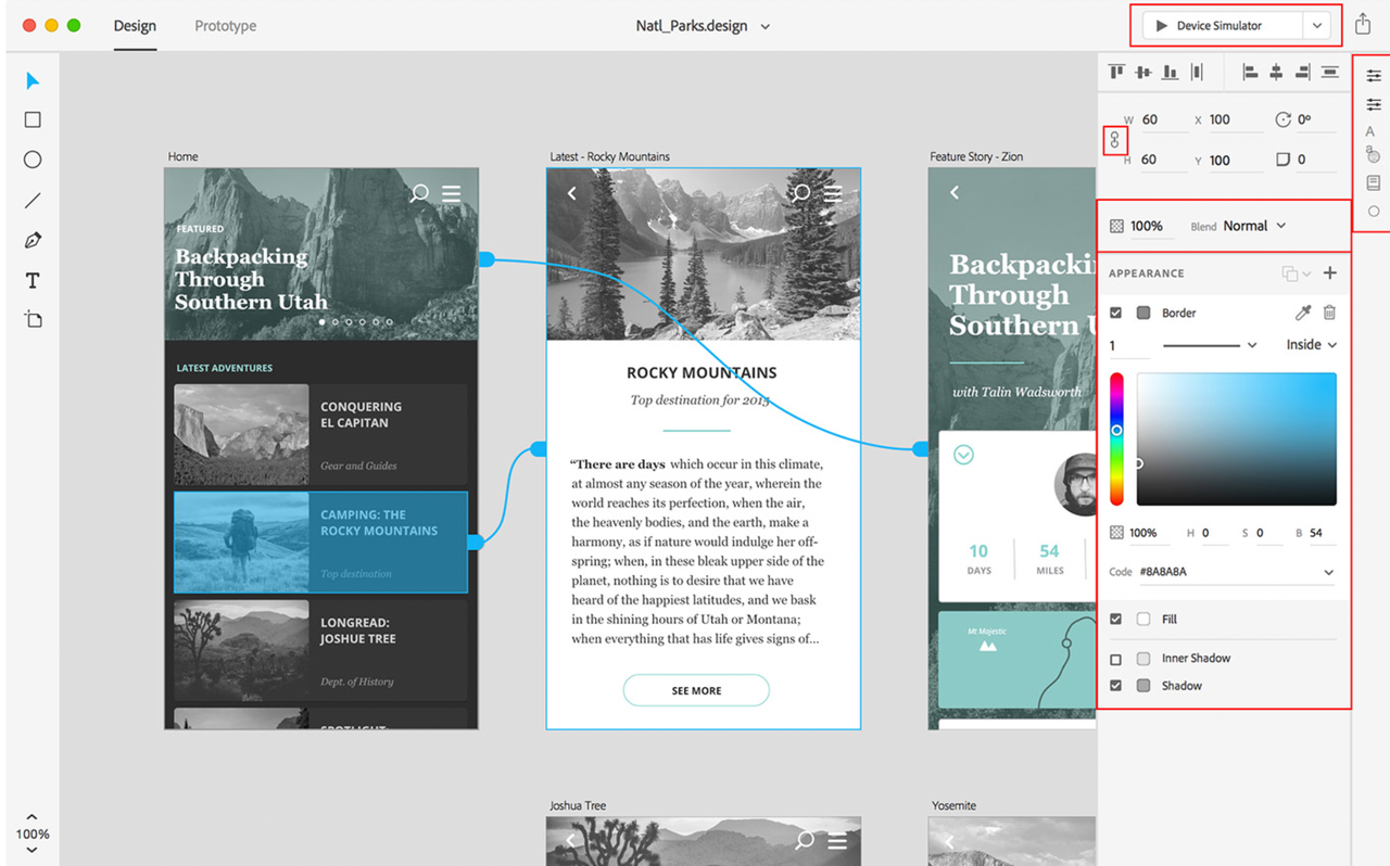 在功能上,XD 的功能也非常强大,矢量编辑能力很强,同时因为都归属于 Adobe 的 Creative Cloud ,可以做到云端的共享和协作。它的外观和感觉与其他Adobe产品类似,因此已经通过其他程序熟悉Adobe工具的用户不用再花上很多的时间来熟悉。